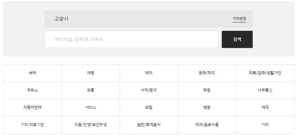 → 경기지역화폐 어플 내 「사용 가능 매장 찾기」로 업종별 사용처를 확인하실 수 있습니다.