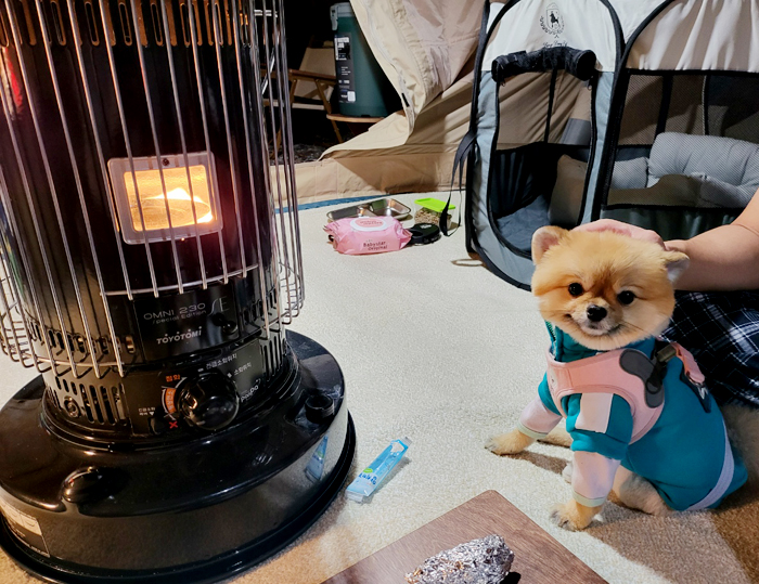 저희집 강아지도 난로가 좋은가 봅니다. 아빠 옆에 한참을 저러고 앉아 있더라고요. 사실 그 옆에 있는 고구마에 더욱 관심이 있었던것같기도하고,,,표정을 보니 너무 사랑스럽네요. 앞으로도 네이처하이크 에어텐트 12.0 + 아이두젠 A3 이조합으로 겨울내내 캠핑을 다닐것 같습니다. 처음에는 에어텐트 공기를 빼고 접는데 요령이 없어서 시간이 많이 걸렸지만 두번째 하다보니 시간이 확 단축이 되더라고요. 이래서 에어텐트 하나봅니다.