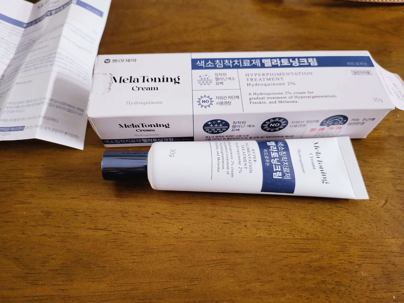 외형은 아이크림처럼 생겼어요. 색소침착치료제 멜라토닝 크림은 히드로퀴논 성분이 20mg가 함유되어 있습니다. 여기서 잠깐, 히드로퀴논이란?