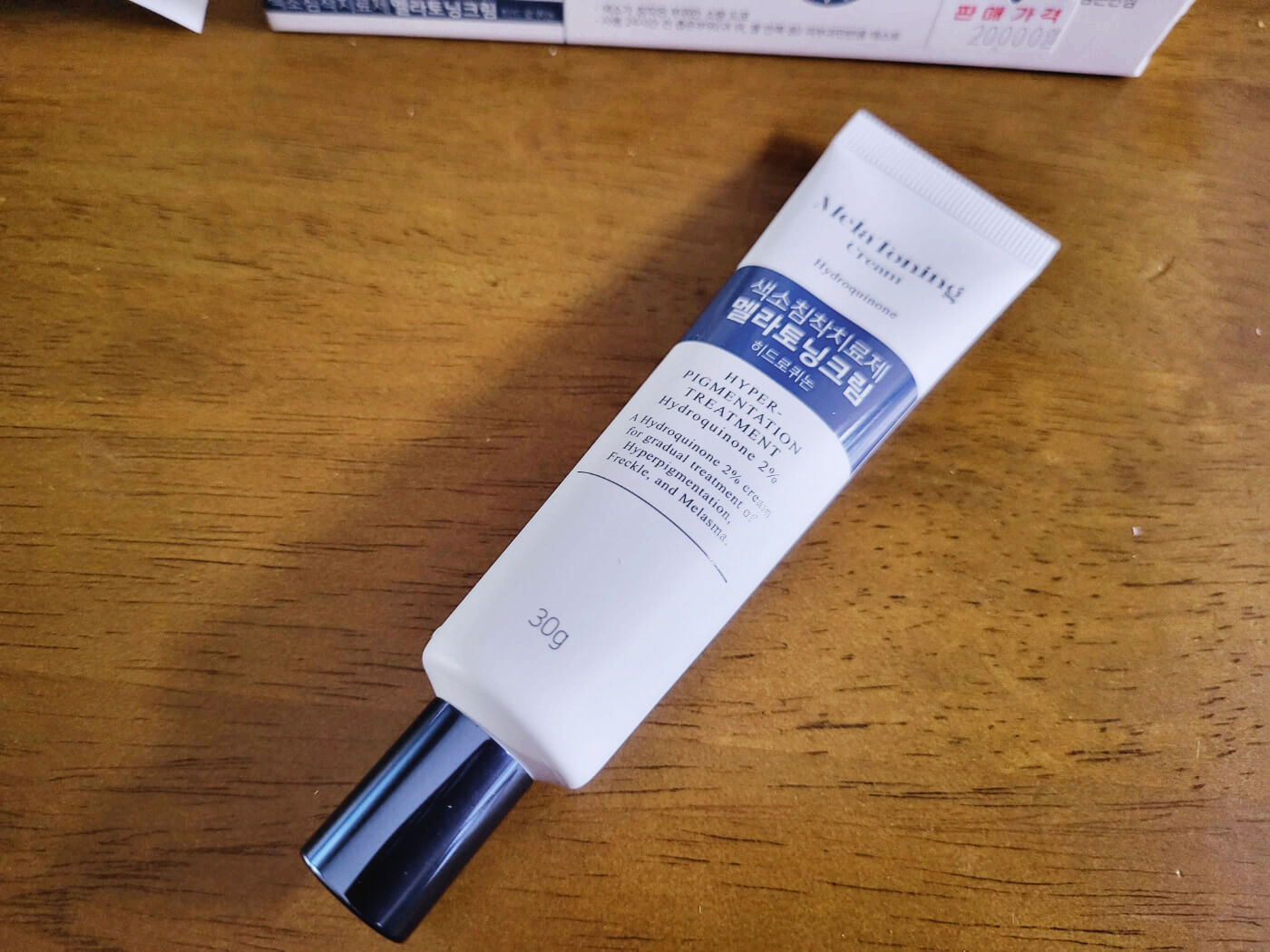 외형은 아이크림처럼 생겼어요. 색소침착치료제 멜라토닝 크림은 히드로퀴논 성분이 20mg가 함유되어 있습니다. 여기서 잠깐, 히드로퀴논이란?