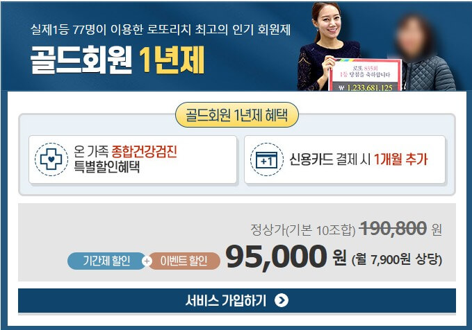 골드회원 1년제로 가입했는데요. 매주 기본조합 10조합을 받을 수 있으며, 1년 이용금액으로 95,000원입니다. 매달 7,900 원이라고 볼 수 있습니다. 비싼커피 한잔 사먹는다고 생각하고 투자했어요. 제발 좋은 결과가 있기를 기대해봅니다. 한달, 6개월, 다양한 유형이 있기때문에 본인에게 맞는 회원제 상품을 이용하시면 됩니다.