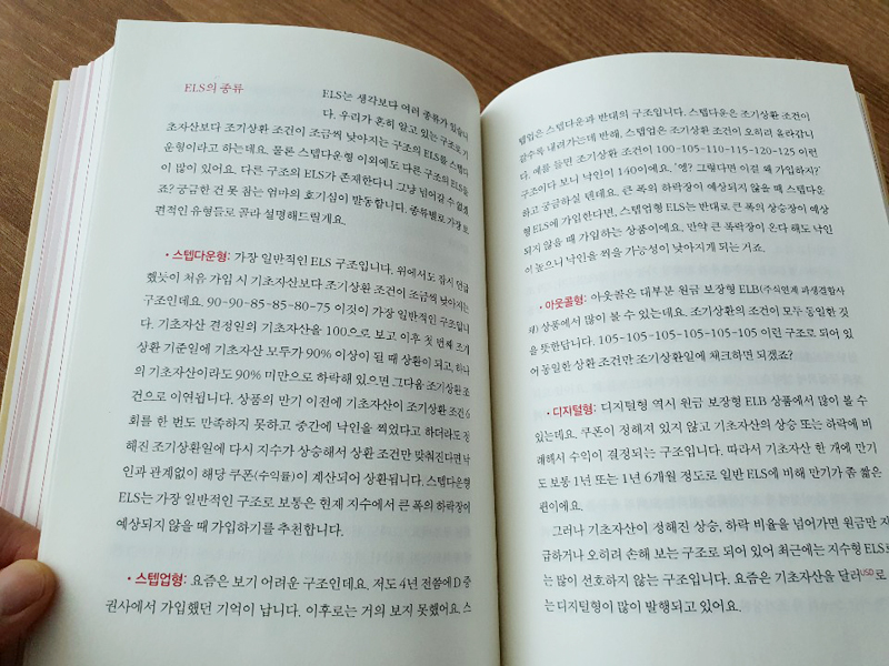 그동안 들어보기는 했지만 관심 밖의 용어들이라 그 뜻을 정확히 알지 못했습니다. ELS는 파생상품이라고 하는데요. 들어도 들어도 이해하기 어렵다고 하셨는데 역시나 어렵네요. 이해하려면 여러 번 읽어보고 관련해서 더 찾아봐야겠다는 생각이 듭니다.