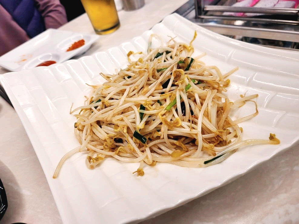 숙주볶음은 양꼬치와 잘 어울리는 것 같아요. 기본 반찬으로 나와요.