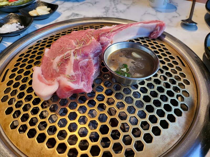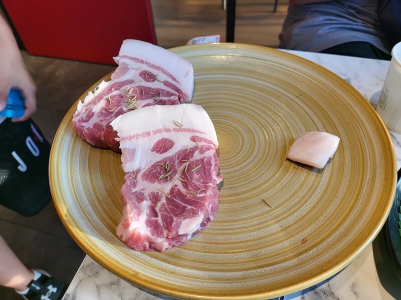 고기는 제주 클래식의 시그니처라고 할 수 있는 숄더랙과 목살을 주문했습니다. 멜젓소스와 함께 나옵니다. 목살의 두께도 심상치 않습니다. 엄청 도톰해요.