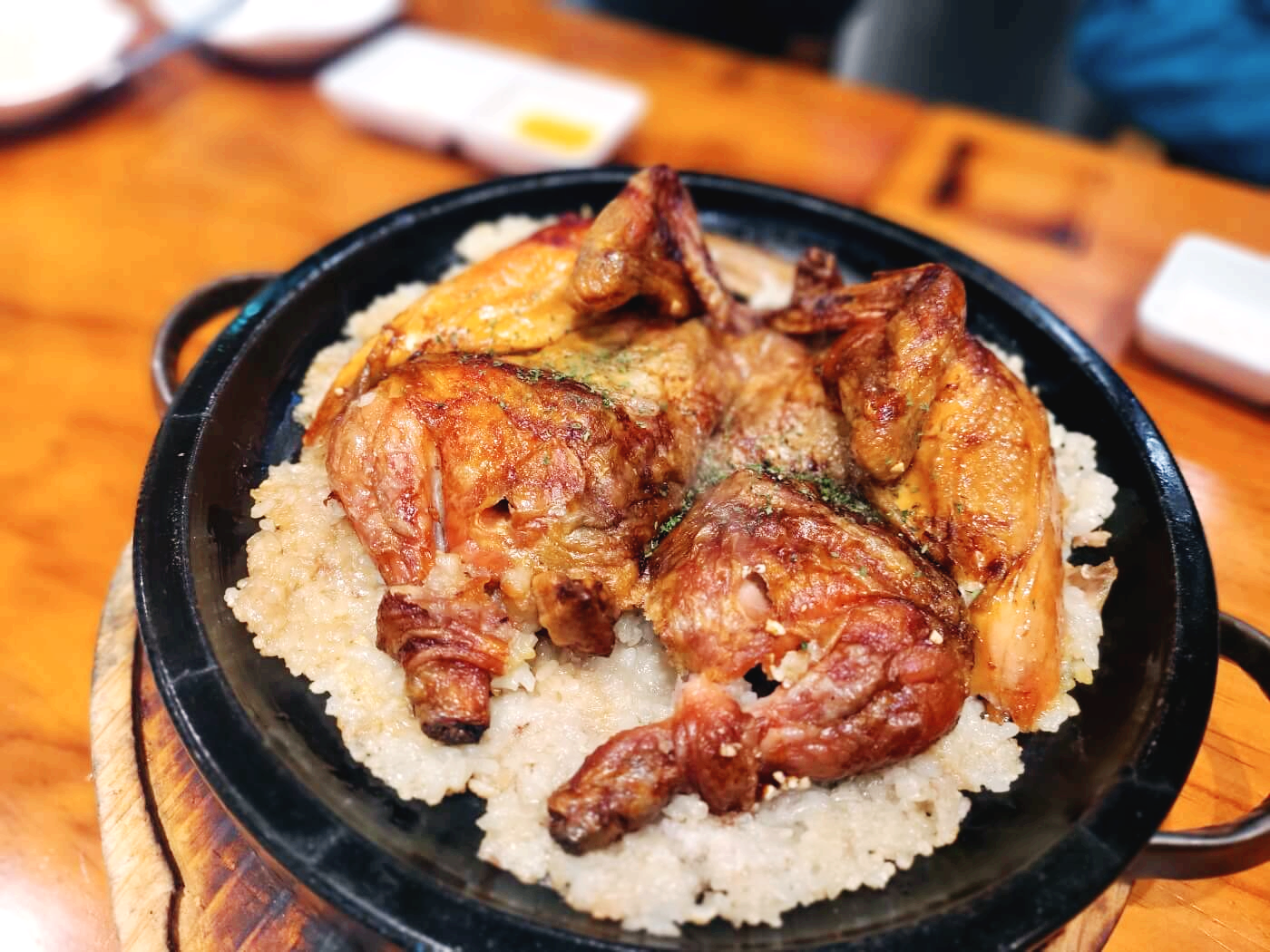 우와~~ 비주얼이 정말 장난 없지요!!! 저는 통닭도 맛있지만 밑에 깔린 누룽지가 정말 별미였습니다. 먹으면서 감탄사가 절로 나오더라고요. 마치 삼겹살은 안 먹은 것처럼 정신없이 뜯어먹었네요.