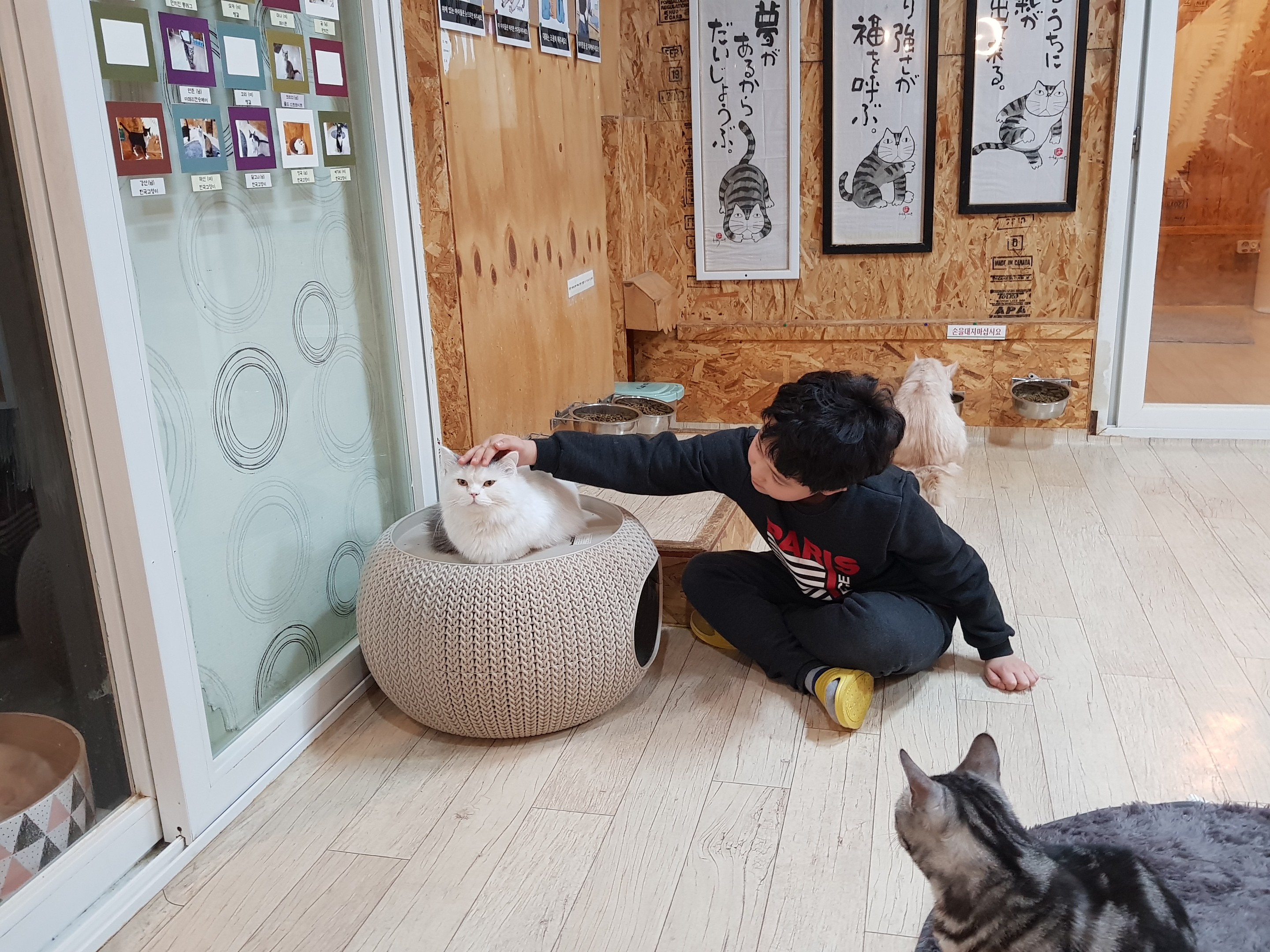 오랜만에 방문한 고양이카페에서 아이들은 신나게,,,