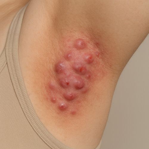 - 흔히 겨드랑이, 사타구니, 엉덩이, 회음부 등 피부가 접히는 부위에 주로 나타나며, 붉고 단단한 결절, 고름집, 누공(피부 속 터널), 흉터가 반복적으로 발생합니다.