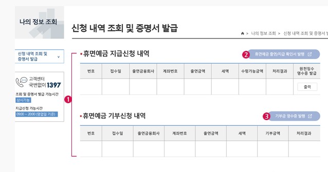 ② 클릭 시 휴면예금 출연/지급 확인서 발행