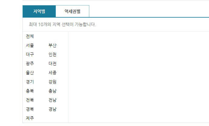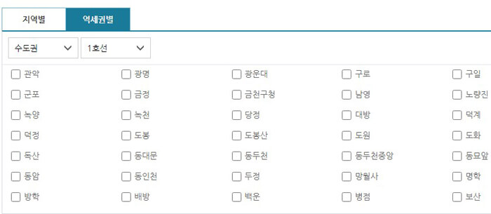 5. 지역별, 역세권별 구분되어있으니 원하는 지역을 설정해주시면 해당 지역만 노출이 되기때문에 보다 빠르게 확인하실 수 있습니다.