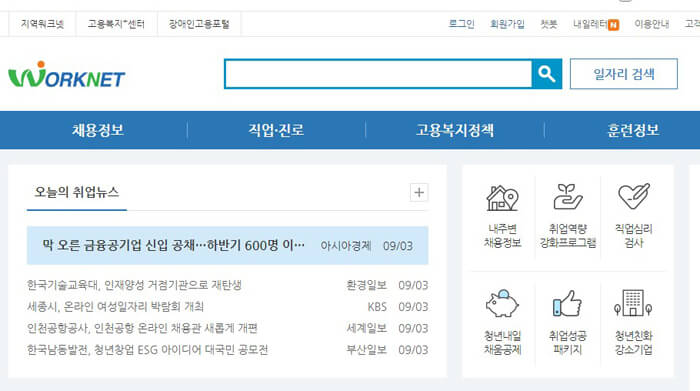 1. 워크넷 홈페이지에 접속합니다.